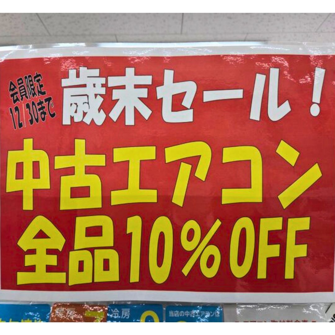 そんな皆様に朗報です! 歳末セールとして、当店の中古エアコンが全品10%オフでお買い得になっております!