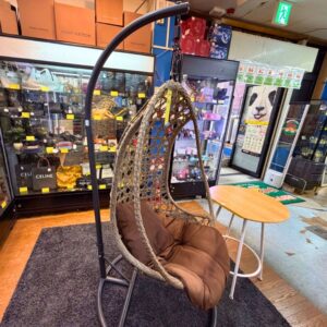 このハンギングバスケットチェアは、店頭にて展示中です。 ぜひ一度、深井店へ足を運んでいただき、この心地よい浮遊感とリラックス空間を体験してみてください!