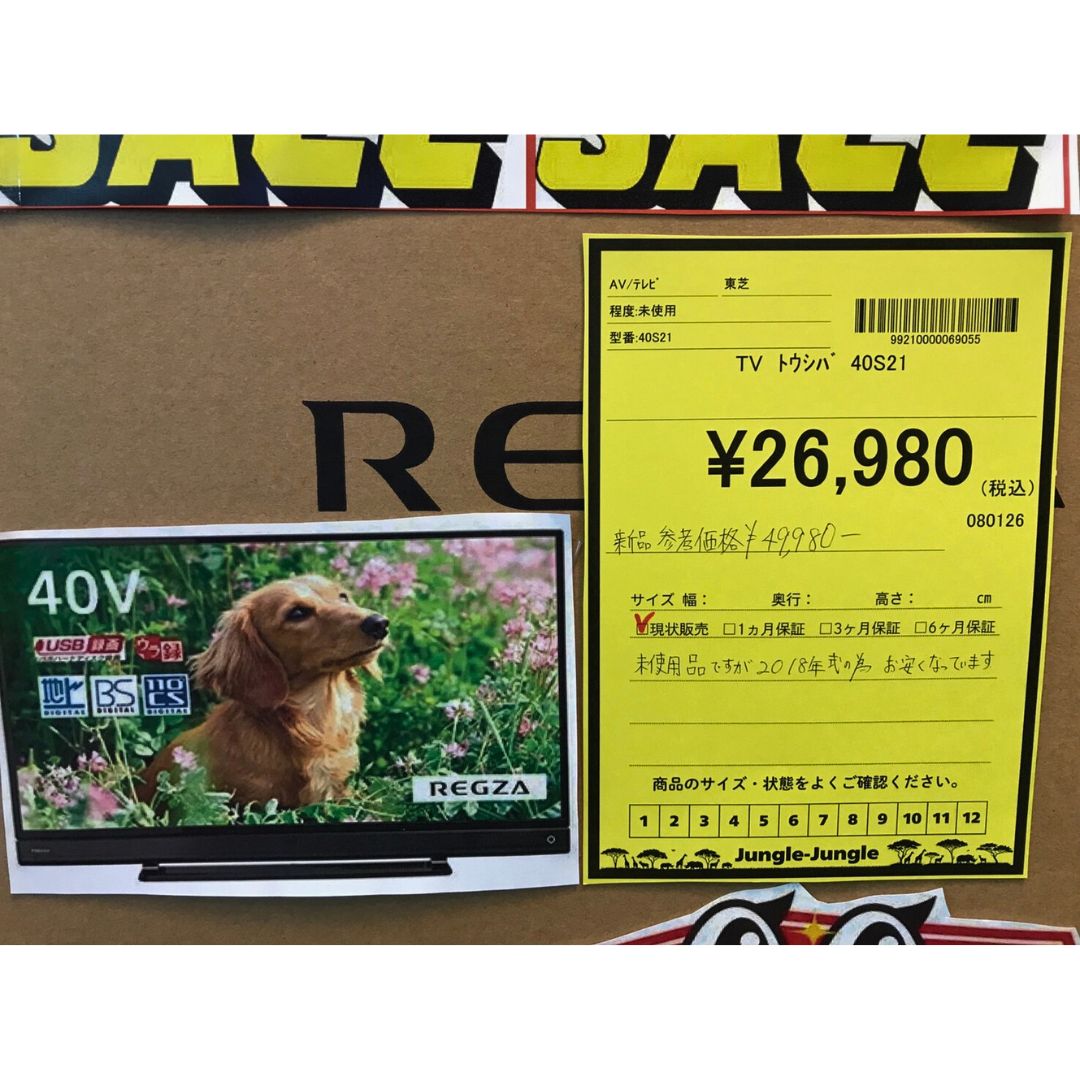 こちらの未使用・特価品テレビは、限定3台のみの入荷となっております! 次回の入荷予定は未定ですので、気になる方はぜひお早めにジャングルジャングル深井店へお越しください!