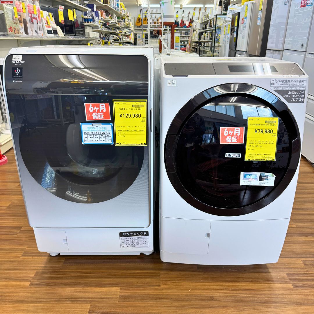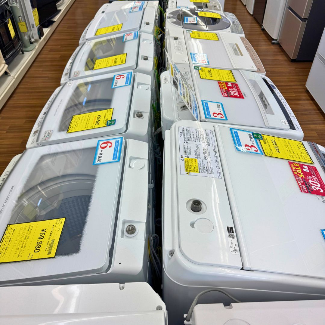 洗濯機: 4.5kg〜の大容量タイプ、さらに便利なドラム式も在庫がある場合がございます。