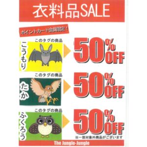 💡 セール内容:こうもり・たか・ふくろうタグが50%OFF!