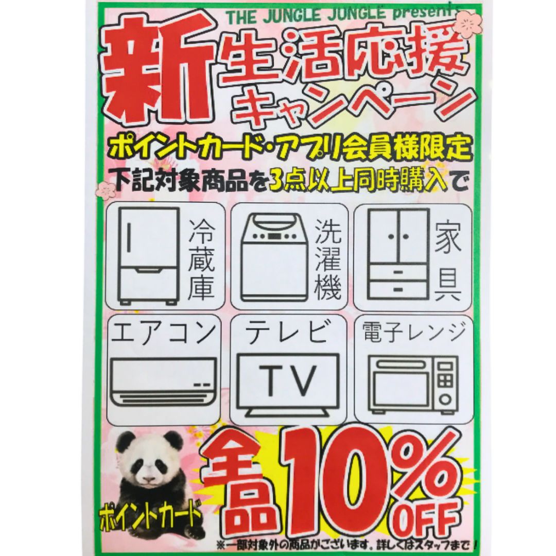 ✨ 1月31日スタート!家電・家具の3点以上の同時購入で10%OFF!!