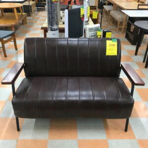 今回入荷したのは、どんなインテリアにも馴染みやすいダークブラウンの合皮ソファーです。